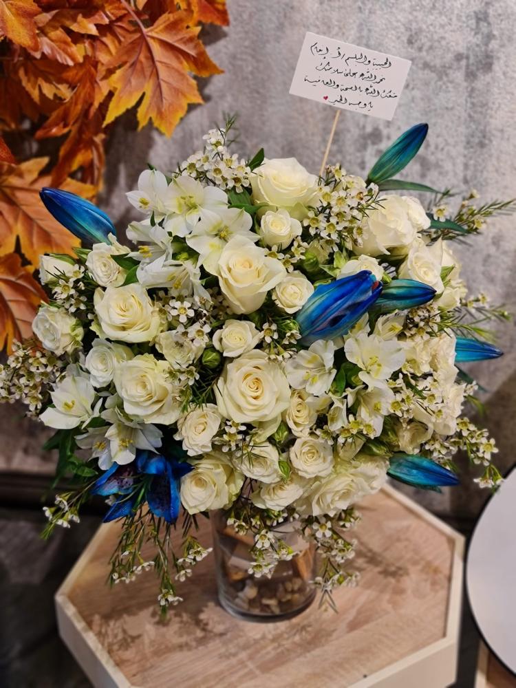 أضف لمسة من الأناقة والدفء مع فازة ورد مضاف إليها شوكولاتة باتشي منسقة بتشكيلة ورود بيضاء، بتنسيق فاخر يجمع بين تنسيق راقٍ بألوان متناسقة. هذه الباقة مثالية للتعبير عن مشاعرك في مناسبات مثل حفلات الخطوبة. تم تنسيقها بتغليف أنيق يجعلها هدية لا تُنسى. ورود طبيعية طازجة تغليف فاخر وبطاقة إهداء مجانية توصيل سريع داخل المدينة مناسبة لجميع المناسبات الخاصة